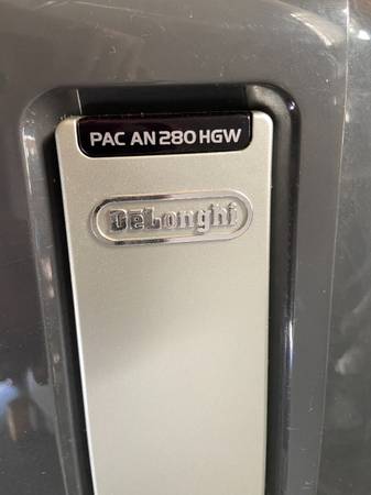 DeLonghi Arctic Whisper PACAN280G1W portable AC air conditioner. Come with window cover panel and exhaust duct. Excellent, runs cold.