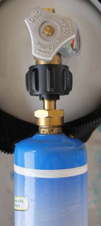 The propane canister and refill adapter are like new. Both were only used twice to refill the canister with propane. The canister is currently 100% full.