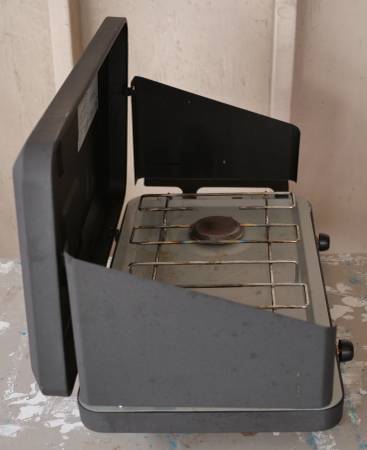 The camping stove is in excellent functional condition. Please see Pictures 23 to 24 for proof that it lights up when connected to the fuel source. I would be happy to demonstrate that it works before purchase by lighting the burners in front of you. The stove is also in pretty good cosmetic condition. But there are a few tiny scratches on some surfaces. But these are merely cosmetic issues that don't harm the functionality of the stove. Included in the purchase is the original cardboard box.