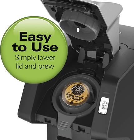 Whether it’s a K-Cup pack or your own fresh grounds, just place them in the holder, lower the lid and press brew.