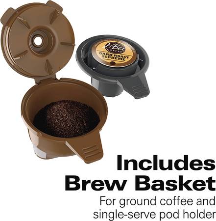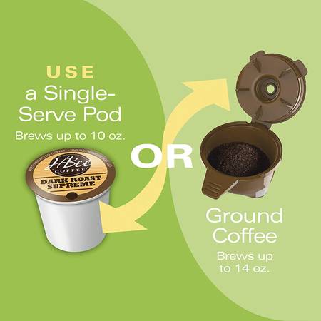 - Brew with a single-serve pack or ground coffee. Compatible with pod packs and grounds