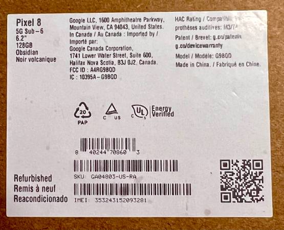 It is certified, refurbished & sealed by Google. Was received as a gift but has never been opened, still sealed in original box.