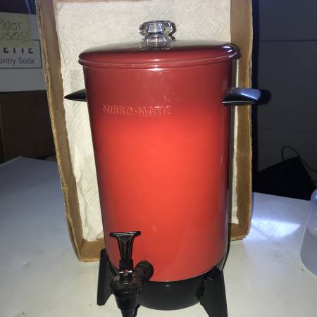 This coffee maker is like new . It still has the box It is a Mirro Matic 22 cup ,and barely used . Bullet proof design .It has the dispenser lever for easy fill up thanks