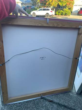 This modern pair of abstract originals brings a sophisticated, artistic touch to your wall décor. Each painting measures 28” by 28” with metal frame and glass, and features expressive brushwork and complementary color palettes, perfect for living rooms, offices, or bedrooms.