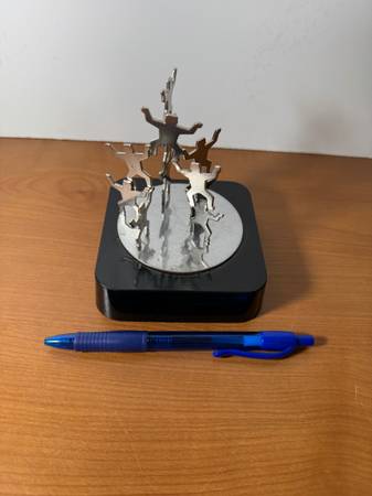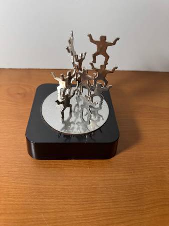 A beautiful and very cool decorative magnetic base with 11 metal men sculpture designed for displaying as decoration in your office or at home.