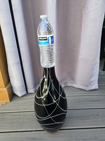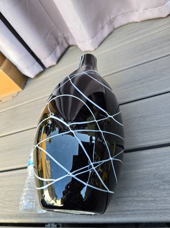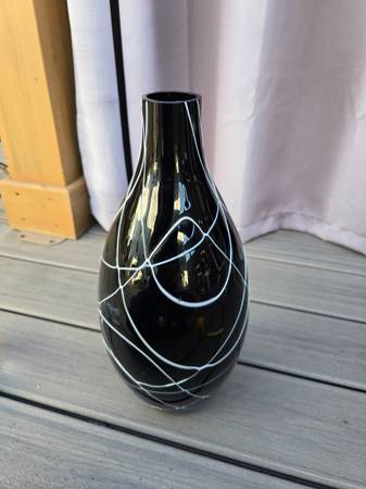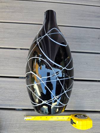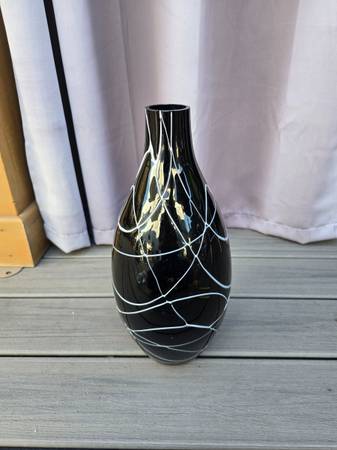 Beautiful White Striped Bulb Black Flower Vase. Nice 8" x 8" 17" H San Jose 95121 Area