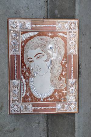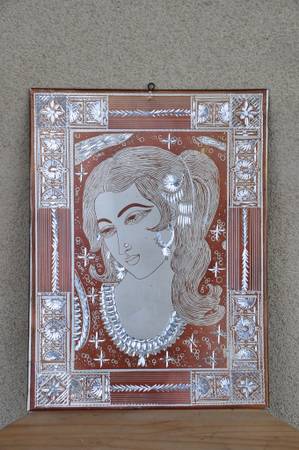 ITEM LOCATED IN SAN JOSE. The engraving show an Oriental woman. I am not sure what metal the sheet is made of, but is is pretty soft. The piece is 12.5"x16.75" in size. Asking $125 (OBO).