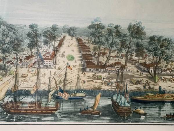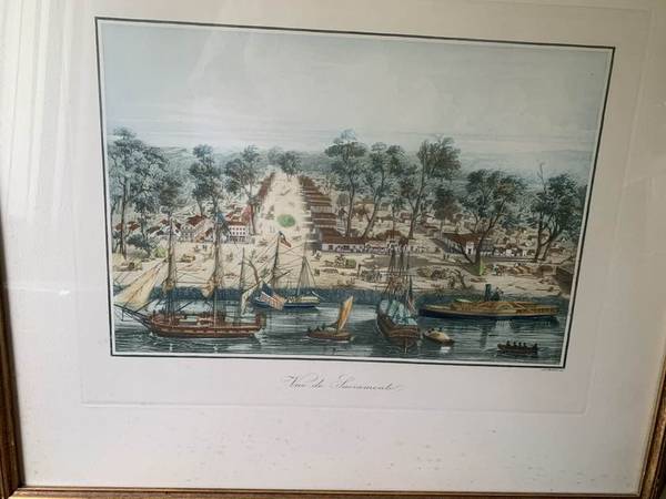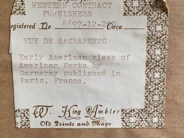 FRAMED W King Ambler Louis Le Breton Vue de Sacramento Aquatint - $750 (san jose west)