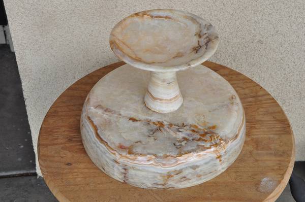 Large 12" wide carved onyx compote centerpiece, pedestal bowl - arts...
