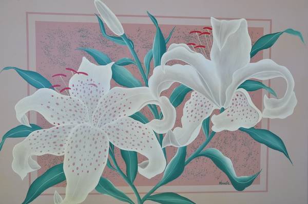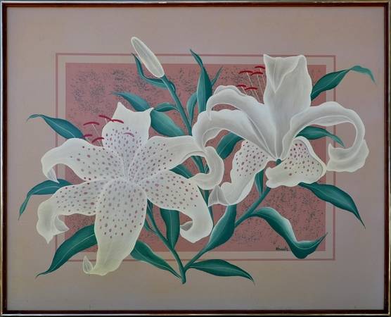 Large oil on canvas painting (51"x41") of white twinkle lily - arts...
