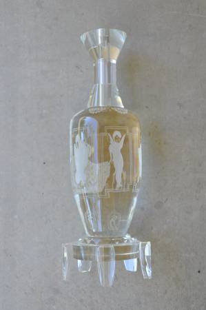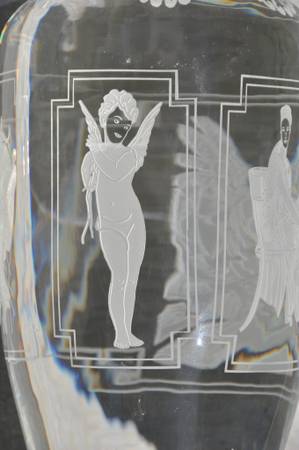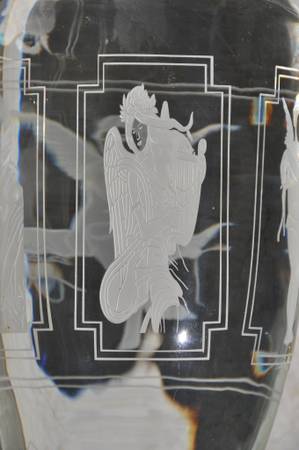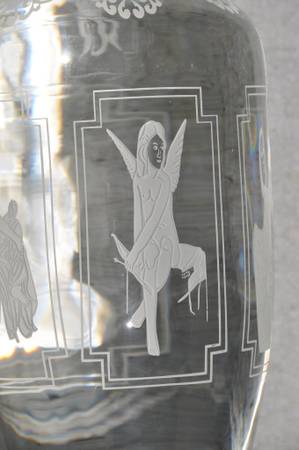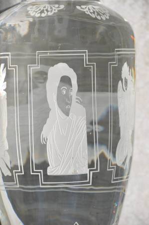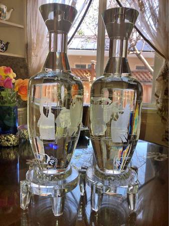 ITEM LOCATED IN SAN JOSE. Shouldered vase form candle holders. They have 6 different figures etched on their sides. They are about 20-1/4" tall. The vase shape is about 6" in diameter. The diameter of the 5 feet perimeter are about 7-1/2". They weigh about 30 lb each in weight. "MADE IN ITALY" is etched on the base. Asking $800 (Or make offer).