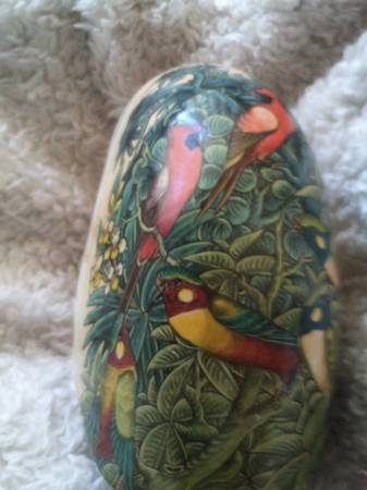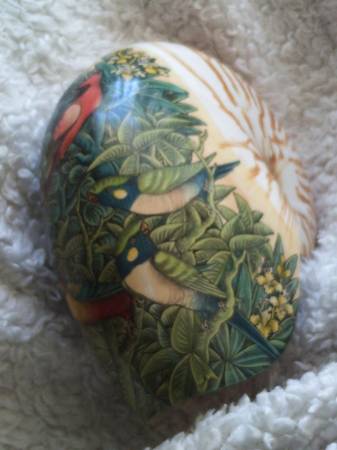 BEAUTIFUL PIECE OF ART! ACTUAL NAUTILUS SHELL WITH BIRDS PAINTED ON IT (CARDINAL, PARROTS, ETC)