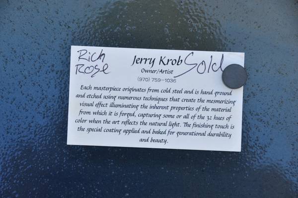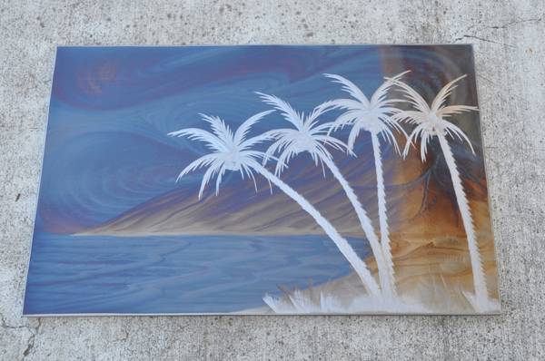 ITEM LOCATED IN SAN JOSE. This as a one of a kind artwork (#1 of 1) made by Michael Jason Krob and Jerry Krob. It is signed on the back. Their art pieces are hand etched and hand heated which gives the art a holographic effect. The final art piece is then powder coated so that the art will be preserved forever. The panel is 33-1/2"x 21-1/2" and weigh about 10.5 lb. Asking $225 (OBO).