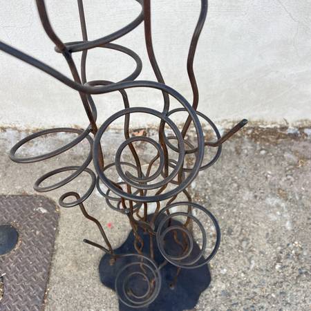 Vintage Arthur Umanoff Iron Free Standing Sculptural Spiral Floor Sculpture Wine Rack Post Modern Metal Swirl 10 Bottle Holder 54in