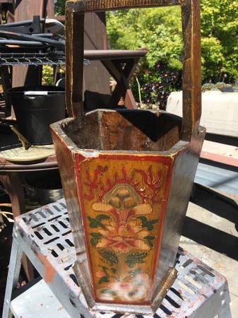 VINTAGE BEAUTIFUL HANDPAINTED FLORAL DESIGN primitive antique