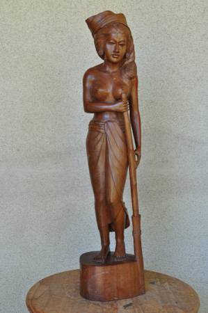 ITEM LOCATED IN SAN JOSE/SANTA CLARA. The woman is holding a broom on her left side. The sculpture is 7" wide, 6" deep, 29" high and weigh about 13lb. Asking $250 (OBO).
