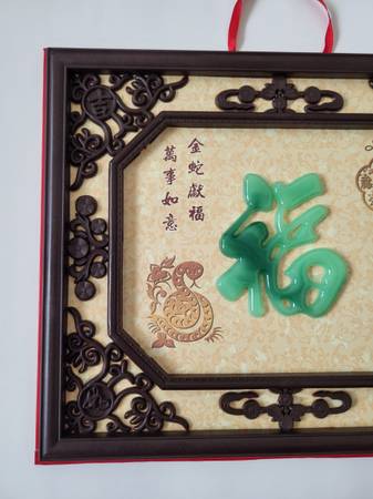 Embossed Chinese word for "Blessing" in the center and "good luck" in the 4 corners Measures approx. 11" x .5" x 13"