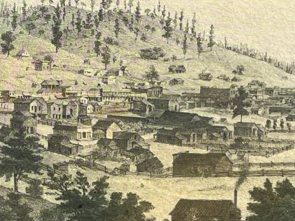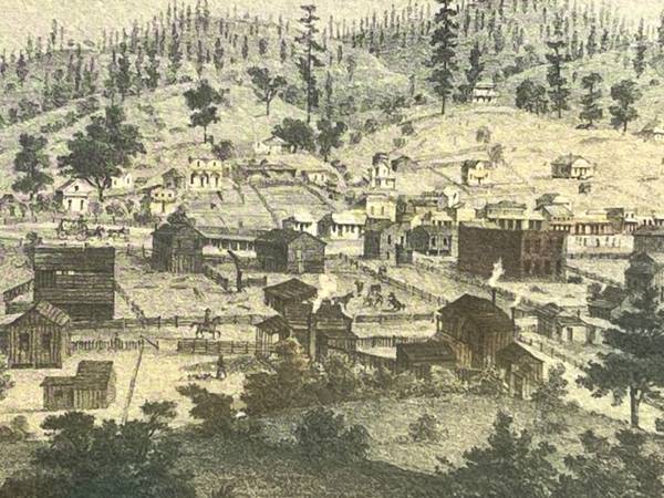 Scotts Bar and French Bar, on the Scotts River, Siskiyou County, California, 1856 (1937). From Old California, In Pictures and Story, by Stewart Edward White and published by Doubleday, Doran and Company (New York, 1937