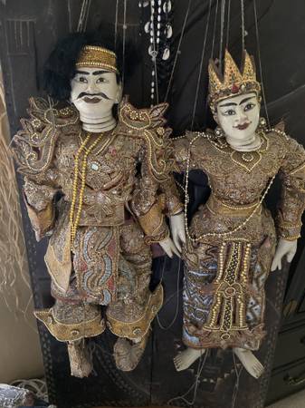 Vintage royal Marionette Handmade String wooden puppets. You are getting the pair The king is 32” tall 14 inches wide The queen is 32” tall, 13”wide NOTE: The best way to communicate is to leave a...