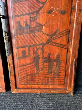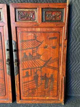 You are getting a pair of vintage / Asian /Japanese / Chinese doors panels These are very unique design with detailed panels great wall hangings for any room in the house. They are 17 1/2 inches wide, 34 inches tall inch and a 1 1/2” thick,
