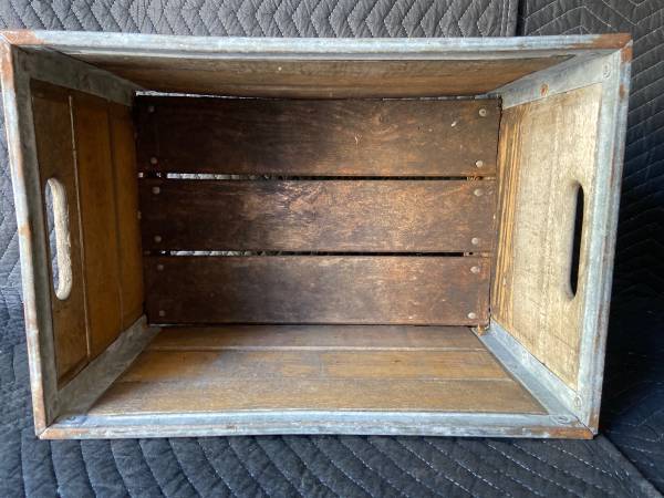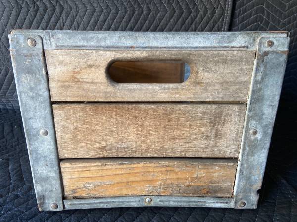 This is a Lucerne /Safeway wooden milk crate dated 10 of 1961. These are highly sought after wooden crates. they are very sturdy sound storage boxes containers. They are stackable if you have more. it is 19 inches across 13 inches deep and 10 1/2 inches tall.