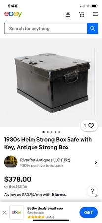 1930s Heim Strong Box Safe no Key Wonderful find, this heavy-duty steel Strong Box made by the Heim manufacturing company of Milton Indiana. Lock Box is made of reinforced concrete plated in steel...