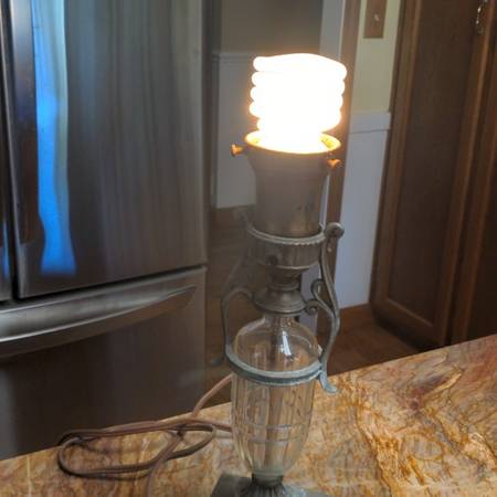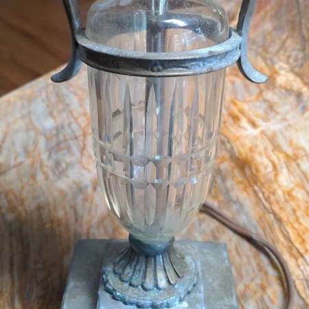 Vintage Crystal Brass lamp brass and crystal works. see pic 14" tall base is 4" x 4" has a newer plug on it no bulb or lamp shade included brass needs polishing if that is what u want.