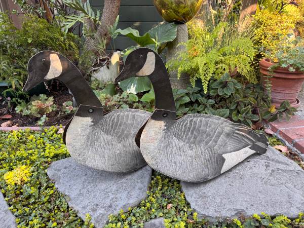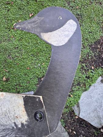 Collectible 1940's Dupe-A-Goose goose decoys. There are 2 available at $25 each. Wear/condition commensurates with age, use and storage. Stores flat when not in use.