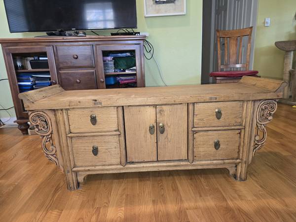 Built over 100 years ago, this stripped Chinese oak chest retails in the $1,000-$1,4000 range. This beauty is solid natural oak, HANDMADE SCROLLWORK. Normal use over 100 years old, a True Treasure!