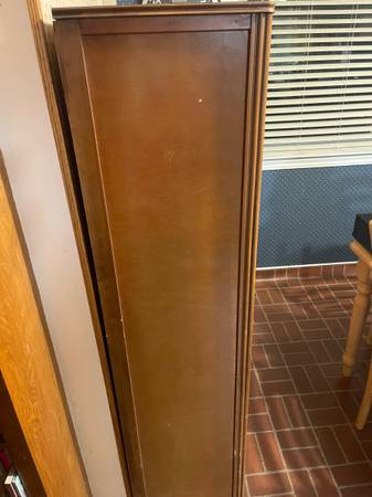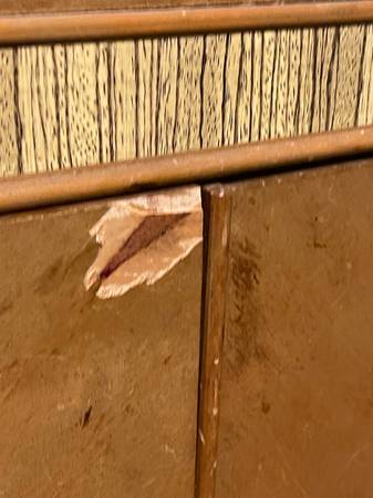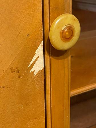 You can see from the pictures it has special wood detailing and special knobs. There are two spots where it is damaged and hopefully this would not be too difficult to repair but it is beyond my abilities. I realized that I was only using this to store junk so it is time to get it into the hands of someone who will really appreciate it.