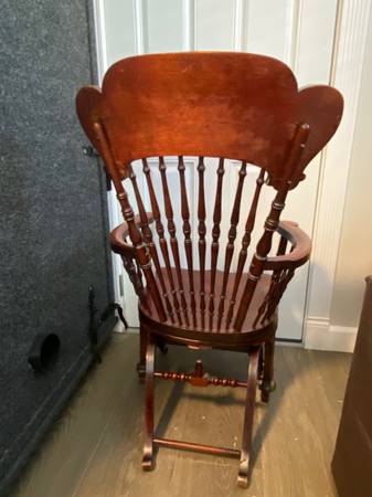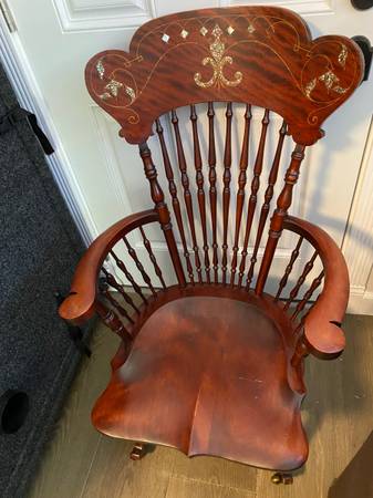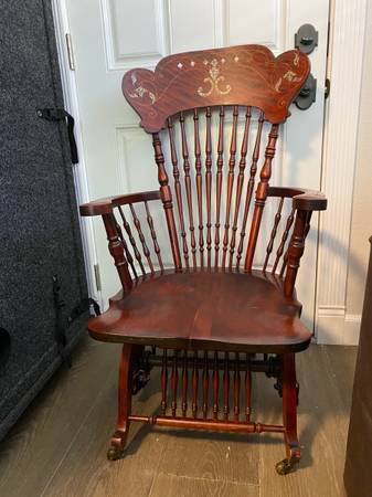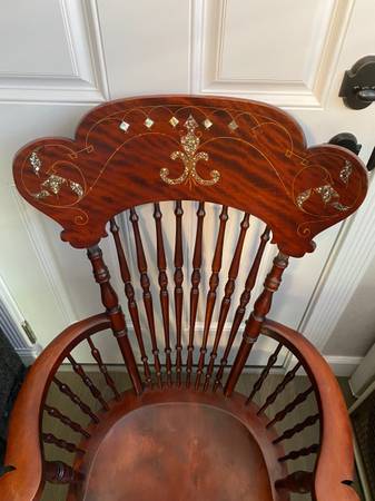 Antique rocking chair with abalone design from 1894 langslow-fowler company NY.