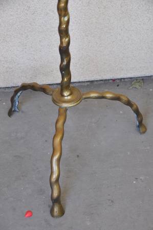 ITEM LOCATED IN SAN JOSE/SANTA CLARA. It is 52" high and weigh about 19 lb. The wind vane is 16" in diameter and the base is 20" in diameter. The stand has a barley twist design. The design seems to be by (or influenced by) Oscar Bruno Bach (1884-1957), a renowned German-born American craftsman, designer and metalworker from the early 20th Century era. Oscar Bach pieces showcase a mix of multiple styles, including Gothic, Spanish Renaissance, Mission, Baroque Revival, Arts and Crafts, Neoclassical, Art Deco and Hollywood Regency. Asking $325 (Or make offer).
