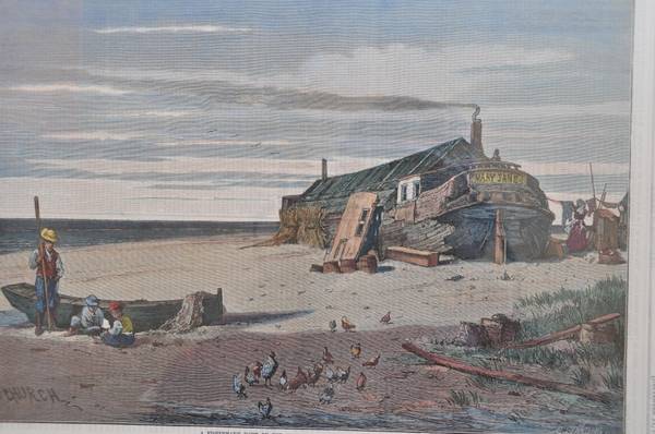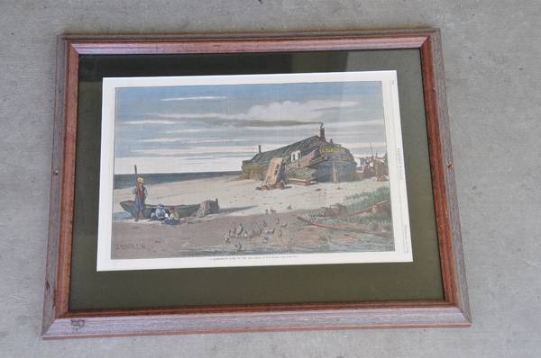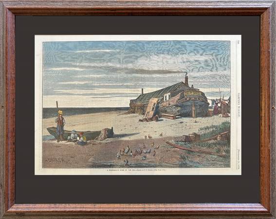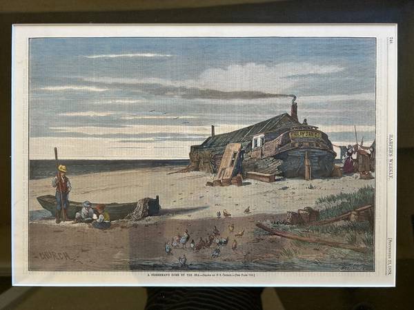 This is an antique original hand colored engraving published in Harper's Weekly September 21, 1878. Titled, "A FISHERMAN'S HOME BY THE SEA". The frame is 20"x16". Asking $125 (OBO).
