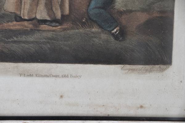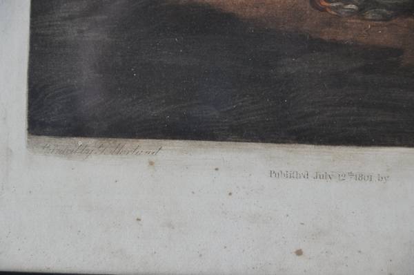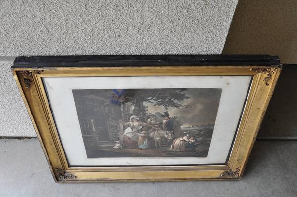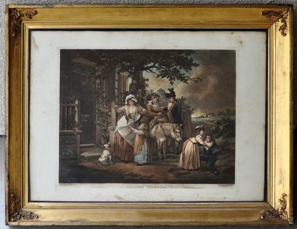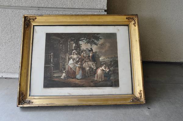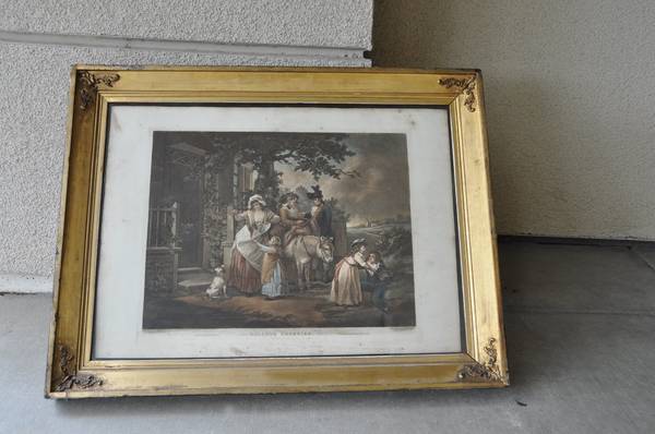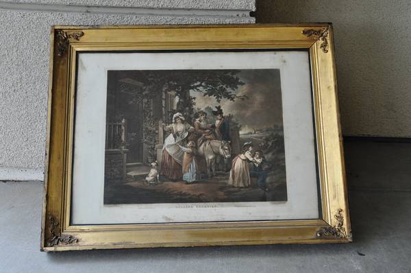 PICK UP FROM SAN JOSE or SANTA CLARA. Original engraving after the 1797 painting by George Morland (British, 1763-1804). It was engraved by Edward Bell and published by Thomas Ladd in 1801. The frame is 30.25"x23.75" in size. Asking $300 (OBO).
