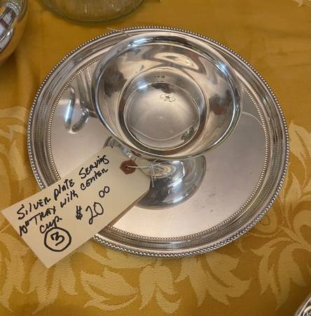 #3)- 10" silver tray with dip bowl in the center $20.00