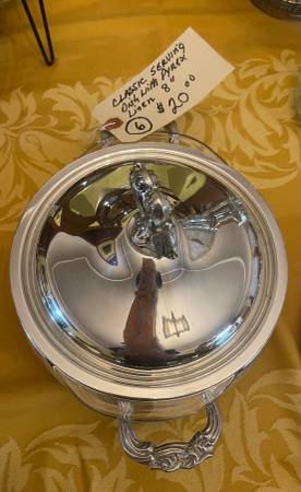 #6)- 8" Silver Serving Bowl with glass bowl and cover $20.00