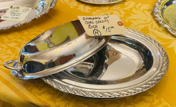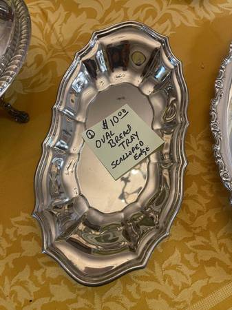 # 1)-12.5" Oval scalloped edge Silver bread tray $10.00