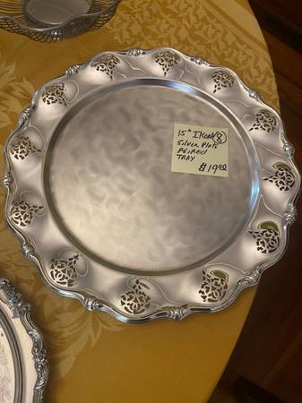 #8)- 15" Ikora Silver plate Serving Tray pierced edge $19.00