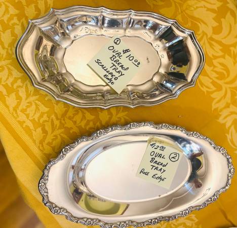 # 2)-14" oval rose edged Silver bread tray $12.00