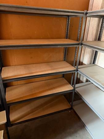 Selling 8 sets of 48”x18” industrial shelving units for $100 each. Each is 72” tall and has 5 shelves. Some are Gorilla and were purchased from Costco.