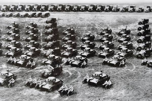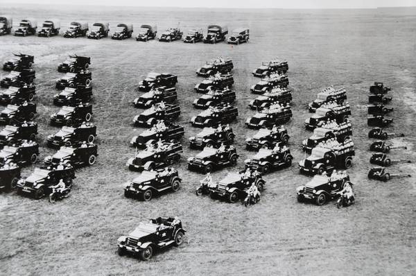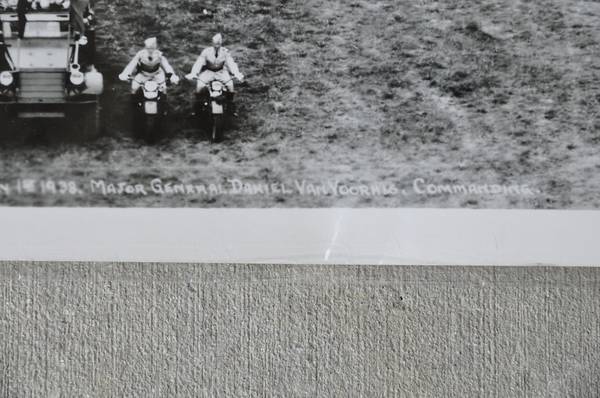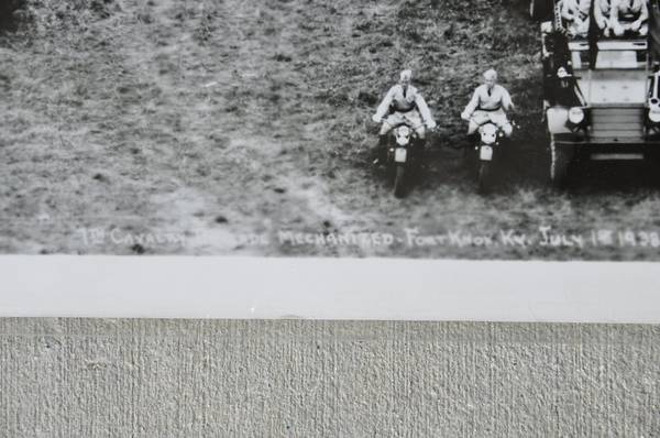 ITEM LOCATED IN SAN JOSE. Titled "7th Cavalry Brigade mechanized, Fort Knox, Ky., July 1st, 1938, Major General Daniel Van Voorhis, commanding". It is signed in ink on the back and also has the studio stamp. The unframed sheet is 61.5" wide and 10" high. Asking $650 (Or make offer).