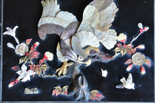 ITEM LOCATED IN SAN JOSE. From Meiji period. Album is 15.5"x10.5" in size. Cover has 3D relief of an eagle on a tree branch with flowers. To get reply text me at . Email replies end up in spam...