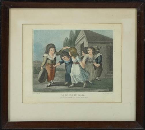 ITEM LOCATED IN SAN JOSE. These stipple engravings printed in color are titled in French as listed below - La Danse en Rond (The Round Dance), engraved by Lainder de Toulouze after William Hamilton...