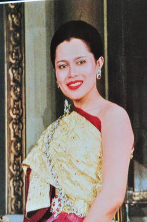 These are hard to find prints of Queen Sirikit of Thailand during her youth, dressed in Thai national costumes. She was the Queen from 1950 to 2016, and is the current Queen Mother of Thailand. In the standing picture Queen Sirikit is in a Thai Chakkraphat dress and it seems to be one of the exhibits in the Queen Savang Vadhana Museum. The portrait image seems very rare. I could not find much information on it. The frames are 18.75"x25" in size and have bamboo motif design. Asking $295 (OBO) for the pair.