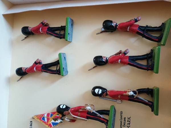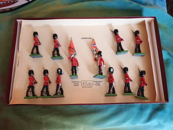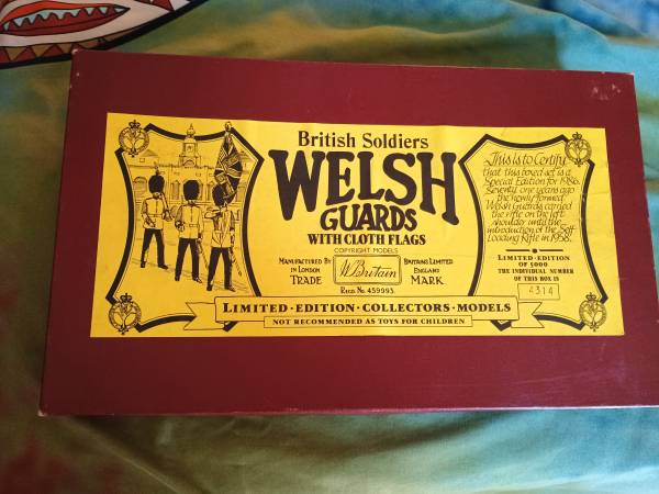 British soldiers Welsh guards ... with cloth flags complete set original box never used As Is $ 100.00 dollars