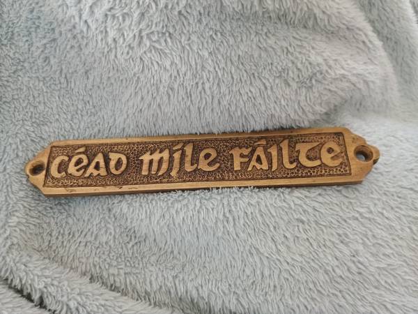 cead mile failte " Irish gaelic " hospitality sign brass ..as is $ 30.00 dollars