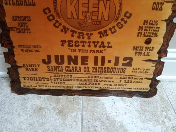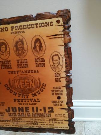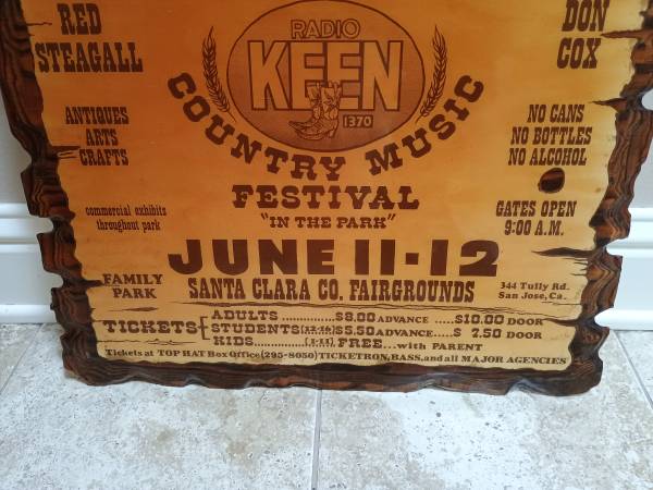 Keen Radio- 1972' 1st country music festival- poster on wood (santa clara)