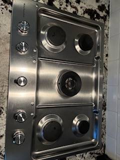 I have a barely used kitchen Aid 5 burner gas top, top of the line model. One burner (left rear) is a melting/slow cooking feature. comes with owner manual. This was always used for natural gas in house near Leigh High School San Jose boarder of Loas Gatos. Extra burner jets for propane gas if needed, came with it. Nice heavy cast iron grates lift right off for easy cleaning. Easy electric start. Comes with a pressure valve and service line. Looking for a fair offer. After 5 and weekends, four "O" eight, seven six eight, seven six four seven