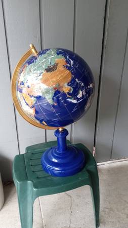 World globe blue glass table top model heavy base $ 50.00 dollars