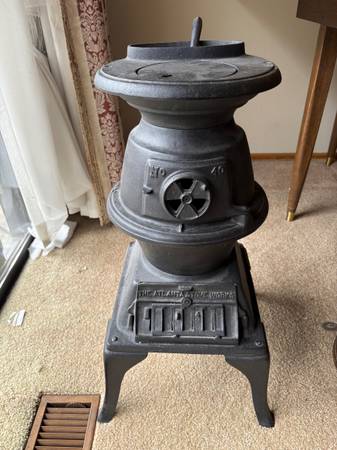 Cast iron pot belly stove, Atlanta Stove Works No. 40.